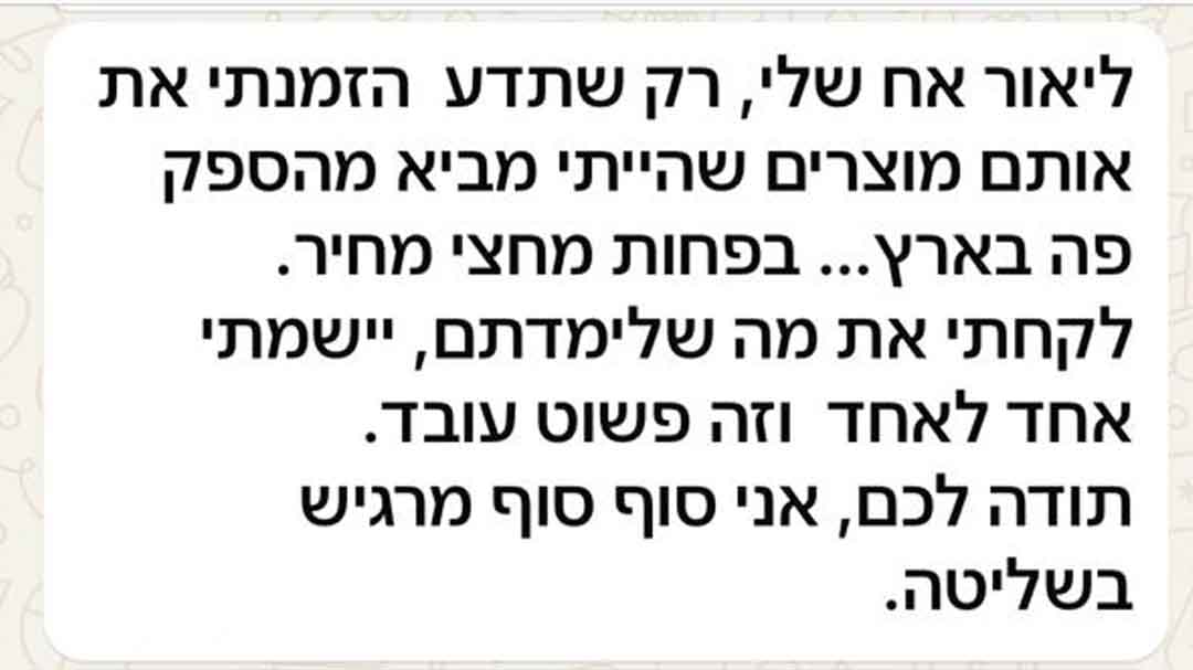 פעם אחת הספק עיכב לי סחורה ונשרפתי מול לקוח